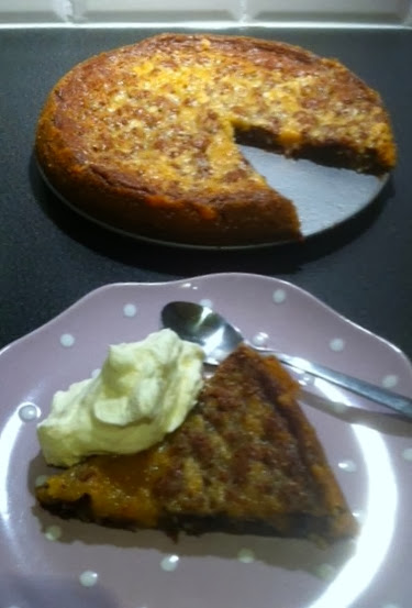 Knäckig kladdkaka med grädde efter recept från Pernilla Wahlgrens blogg. Utseendet lämnar en del att önska och den ser inte alls lika god ut som Pernillas kladdkaka men den var faktiskt jättegod. Så än en gång besannades den kända tesen att det inte är utsidan som räknas :)